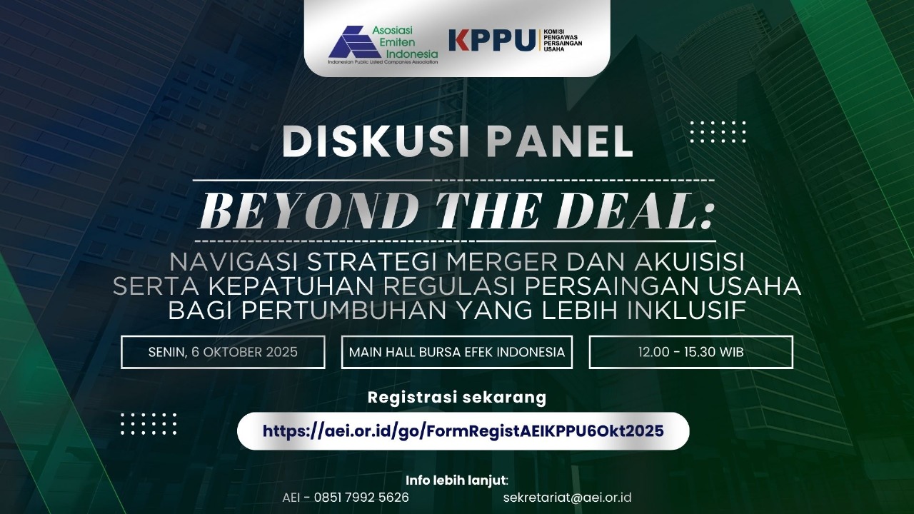 Asosiasi Emiten Indonesia (AEI) bersama Komisi Pengawas Persaingan Usaha (KPPU) mengundang Anda dalam Diskusi Panel Eksklusif: