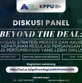 AEI bersama KPPU menggelar diskusi panel eksklusif seputar strategi merger & akuisisi serta kepatuhan regulasi persaingan usaha untuk mendukung pertumbuhan pasar modal yang inklusif.