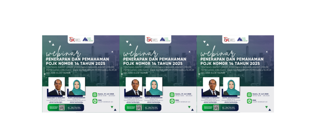 Webinar ini membahas penerapan POJK 14/2025 mengenai penyelenggaraan RUPS, RUPOb, dan RUPSy secara elektronik, bersama narasumber dari Otoritas Jasa Keuangan (OJK).